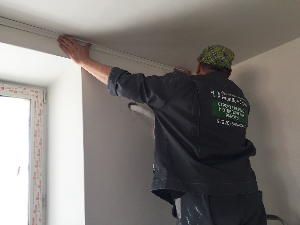 • потолки сделаны натяжными (за потолок при протечке можно не бояться, он соберет в себя всю воду, которая с легкостью откачивается из него)